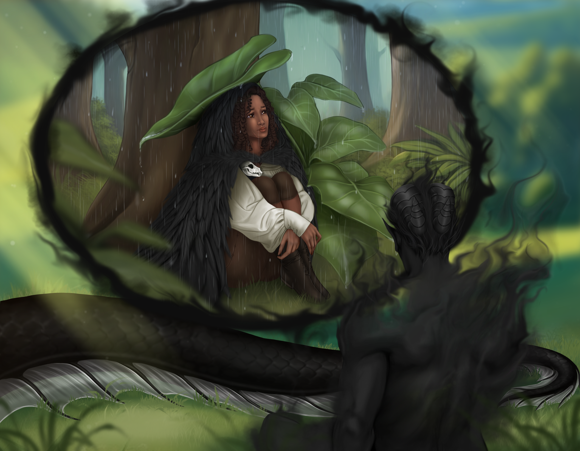 Official SFW art of Lindiwe, Weldir, and baby Orpheus